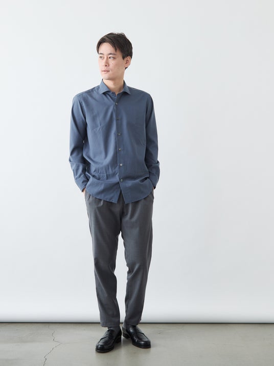今回は、世界三大ウール生地産地である愛知県尾州の「西川毛織」で作られた、ウール×ポリエステルのギャバジン生地を採用しました。