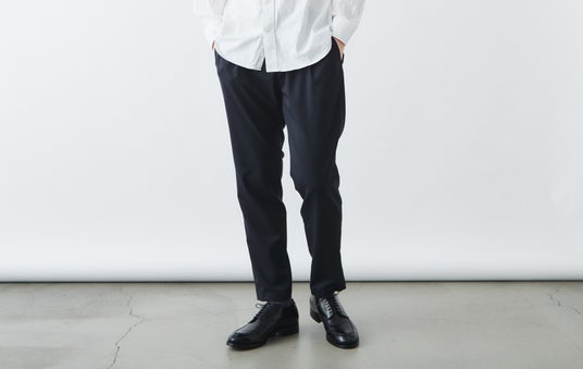 シンプルながらも計算されたシルエットが、フォーマルからカジュアルまで幅広いシーンに穿き回せるパンツです。