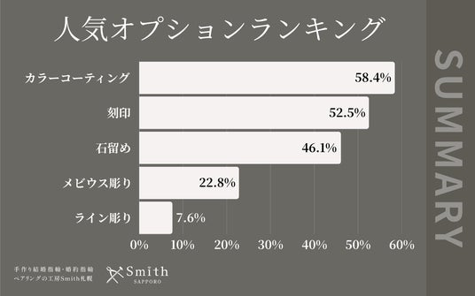 株式会社一宝(所在地:北海道札幌市)が運営する、北海道の手作り結婚指輪・婚約指輪・ペアリング工房「工房Smith札幌」は、2025年12月にご依頼いただいたペアリングのオプションランキング結果をまとめました。