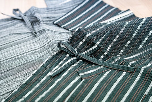 「しじら織り」とは、張った経糸と弛ませた経糸で生地を複雑に波打たせる巧みな技法です。