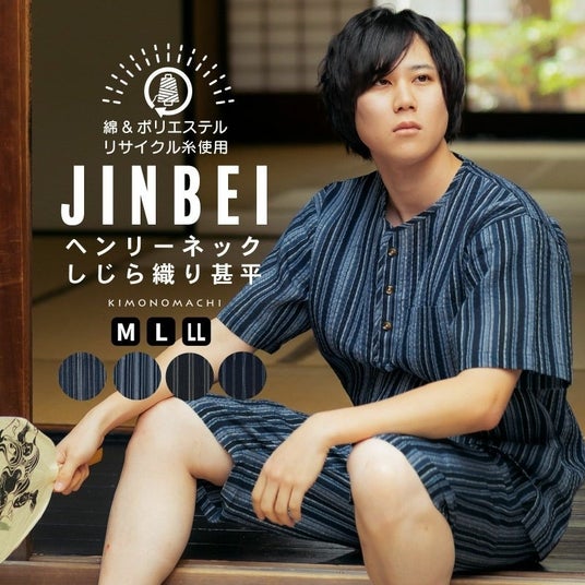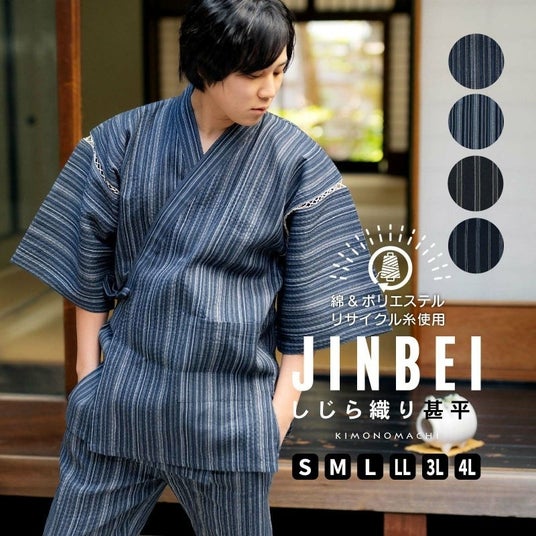 リサイクル糸使用甚平リサイクル糸を使用した綿ポリエステルのしじら織り甚平です。