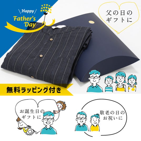 年代問わず着ていただきやすい落ち着いた色合いを中心に、全8柄を展開いたします。また、S・M・L・LLの4サイズをご用意しており、幅広い体型の方にご着用いただけます。お好みに合わせてお選びいただけるため、ご家族でお揃いにしたり、父の日を先取りしたギフトとしてもおすすめです。
