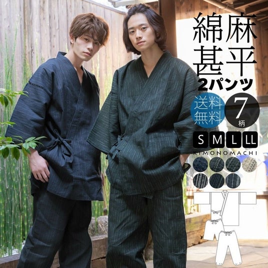 綿麻甚平2パンツセット当店の「甚平」のボトムスは短パンタイプですが、「長ズボンがほしい」というお客様の要望に応え、「短パンと長ズボン」がセットになったアイテムを商品化。