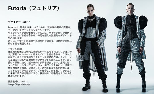 8月20日より約1ヵ月にわたり開催していたコンテスト「AI FASHION CHALLENGE #13 -Forms In Flux(フォームズ・イン・フラックス)-」では、「季節や時代を超えて変化し続ける、美の境界を表現したスタイル」をテーマに募集。参加者には、テーマに沿ってコンセプトからデザインまで自由に考案したブランドを、生成AIを活用して作成したアイテム画像とともに応募していただきました。