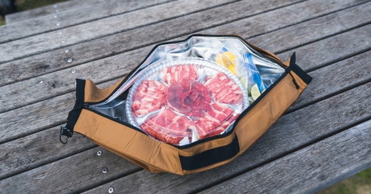 『Shupatto 保冷バッグ 20L』(税込4,180円)は、一気にたためてコンパクトになる特長に保冷機能をプラスしました。袋口を2層構造にすることで、持ち手を絞って肩に掛けられ、ファスナーの開閉もスムーズにできます。手提げひも付きで、スーパーのカートなどに掛けられます。表生地には撥水生地を使用。 2Lペットボトルが5本入るサイズで、アウトドアの食材の持ち運びにもおすすめです。