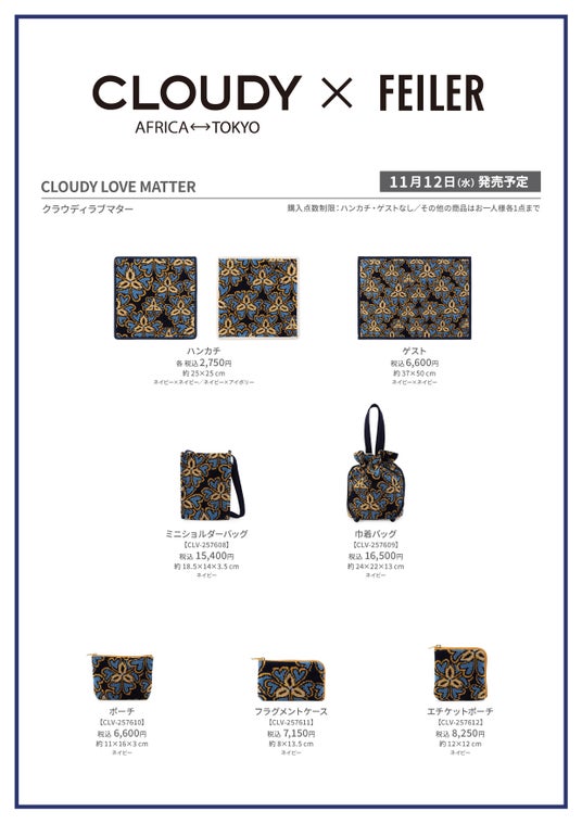 「CLOUDY(クラウディ)」と「FEILER(フェイラー)」は2021年からコラボレーションを開始し、今年で5年目。発売した商品の一部は即日に完売するなど、大きな反響をいただいております。また商品をご購入いただきましたお客様からは、売上の一部がアフリカのワーカーに還元される点も高く評価され、人気のコラボレーションとなっています。