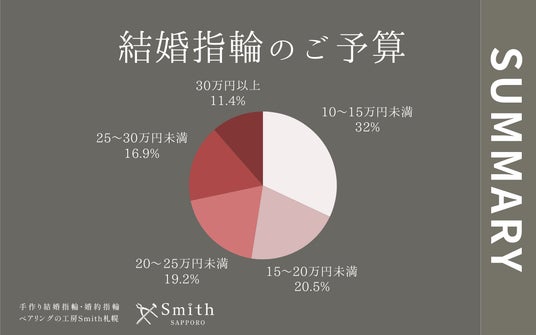 株式会社一宝(所在地:北海道札幌市)が運営する、北海道の手作り結婚指輪・婚約指輪専門店「工房Smith札幌本店」は、2025年下半期(7月~12月)にご来店いただいた多くのお客様の実績データを集計いたしました。 そこで、実際に先輩カップルが選んだご予算や、お店選びの決め手となったポイントを「人気ランキング形式」で発表いたします。これから結婚指輪・婚約指輪探しを始めるおふたりに、ぜひ参考にしていただきたい最新のトレンド情報です。
