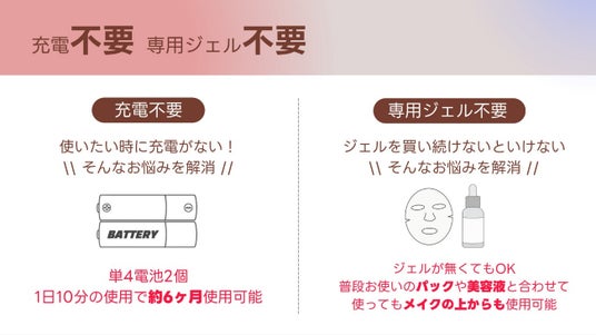 使用時の手間やストレスに配慮した設計により、日常のケアに無理なく取り入れやすい美顔器です。