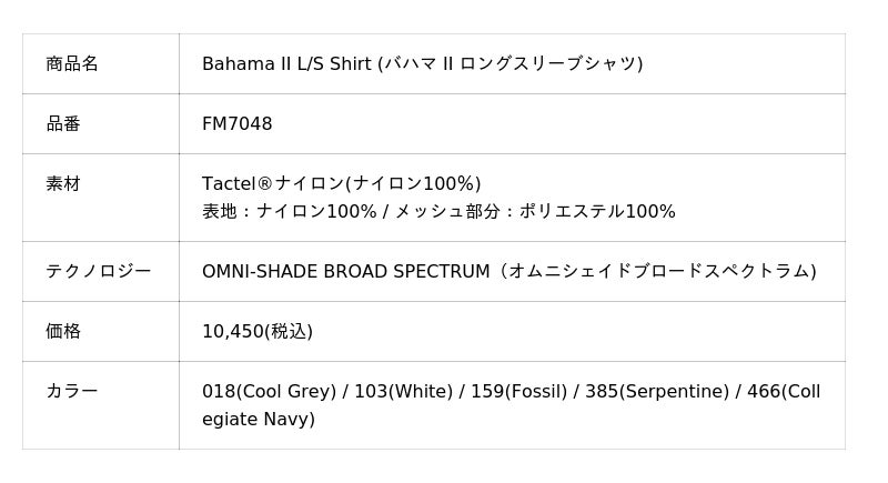 2004年には現行仕様の「Bahama Shirt II」へとアップデート。襟元はボタンダウン仕様となり、ポケットもシンプルで使い勝手の良いデザインへと進化しました。キャスティングの動作を妨げないゆとりのあるシルエットに加え、ロングスリーブにはロールアップした袖を固定できるループを備え、シーンに応じた着こなしが可能です。