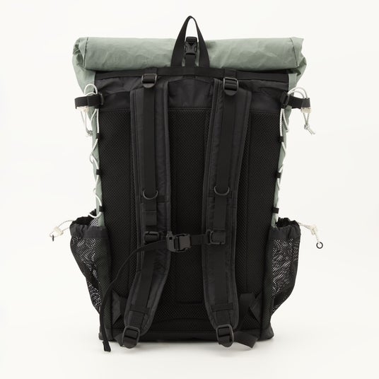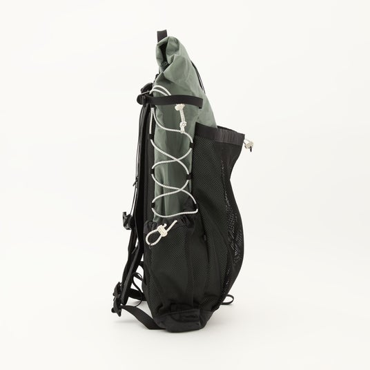 PUコーティング、リサイクルナイロン100%軽量で背負いやすい大容量なデイパック。日常使いからアウトドアシーンまで幅広く使え、サイドにはメッシュポケットとバンジーコード付き。