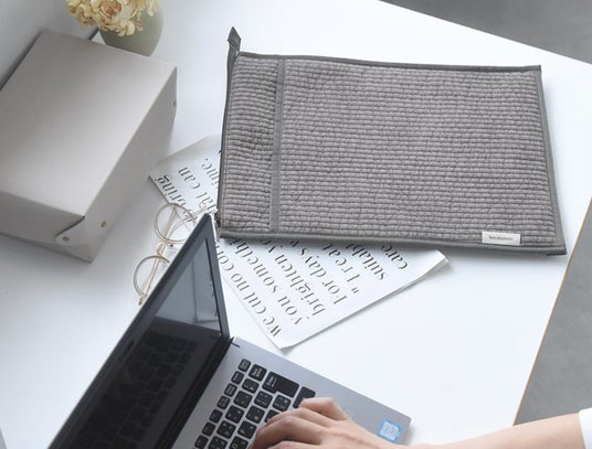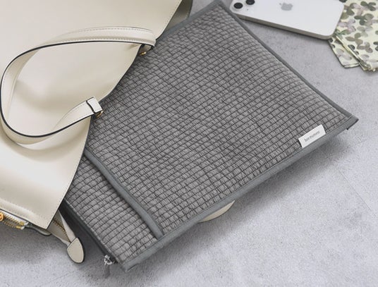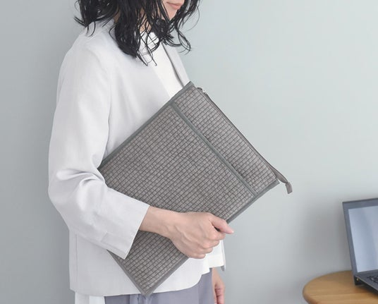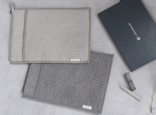 バッグの中に圧迫感なく収まる「すっきりスリムな ヌビ風 PCケース」と、