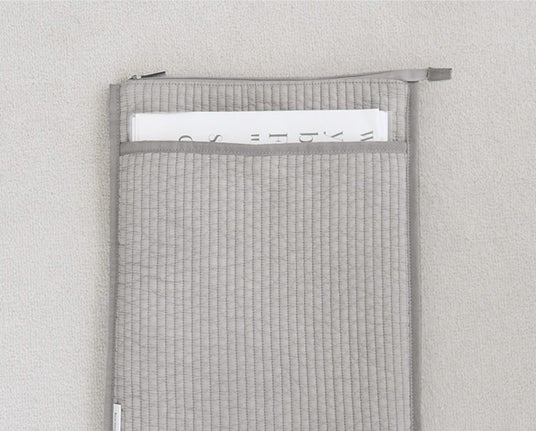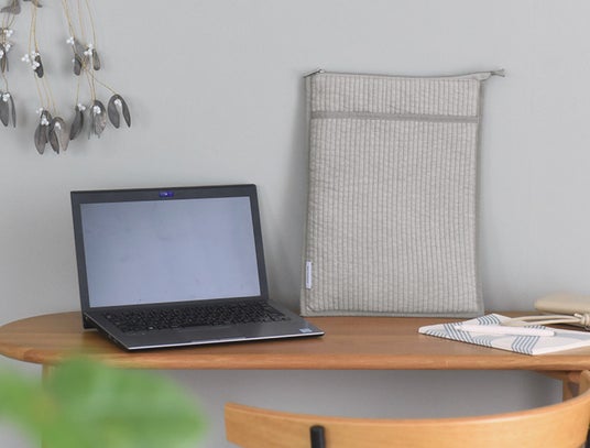 中綿入りでクッション性もありながら、バッグの中を圧迫しないスリムさに仕上げたPCケース。