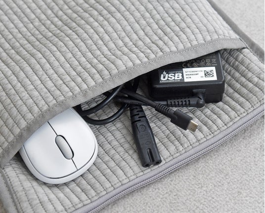 ケーブルやマウスをまとめて入れられる外側ポケット付き。