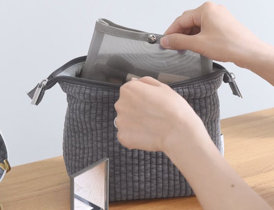 さらにメッシュケースも付属しているので、粉のついたブラシを分けて入れておくことも。