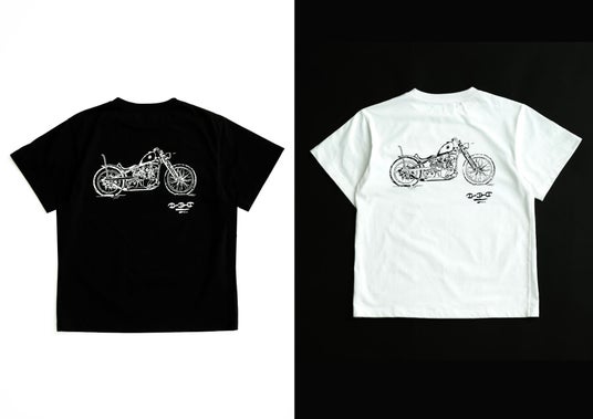 デザイナーのRobert G Keithが所有し、自らカスタムを施した希少なヴィンテージバイク。この貴重なバイクが、二子玉川店のオープンを祝して贈られ、店内ではHOORSENBUHSの世界観を象徴する存在として展示されています。そんな特別なバイクをグラフィックに落とし込んだTシャツが、二子玉川店限定で登場。ハイゲージで編み立てた程よい厚みのしなやかな生地を使用し、ルーズフィットのシルエットに仕上げた一着は、他にはない特別な仕様です。