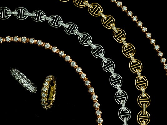 無限を思わせる上質な天然ダイヤモンドが連なるネックレス。シンプルながら上品で華やかな一本で、側面には〈TRI-LINK〉モチーフをさりげなくデザイン。同シリーズのブレスレットとリングも展開され、洗練されたジュエリースタイルを楽しめます。オープンフレームで仕上げた〈TRI-LINK〉モチーフのブレスレットは、繊細で軽やかなつけ心地。中央のブリッジ部分には天然ダイヤモンドがきらめき、手元に上品なアクセントを添えます。