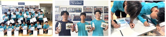 七夕に合わせて、アビスパ福岡トップチームの選手からアカデミー選手への直筆メッセージが入った七夕カードを作成いただきました。その七夕カードにはアカデミー選手による夢や願いが記され、目標に向かって努力する決意を新たにする機会となりました。さらに、「パーフェクトワン トリートメントシャンプー」「朝イチスッキリ!青汁サラダプラス」など人気商品をプレゼントいただきました。