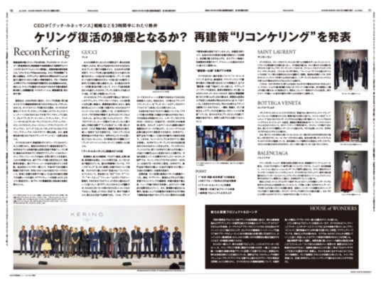 ミニ特集では、ルノー出身の新CEOが発表したラグジュアリー大手ケリングによるリバイバルプラン“リコンケリング“を徹底解剖。世界的にラグジュアリー市場が失速する中、気になるあのブランドの再建策や成長戦略、今後に迫ります。