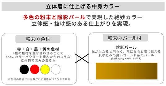さらに、スルスル描けて立体眉に導く“多色粉末&陰影パール” を配合。