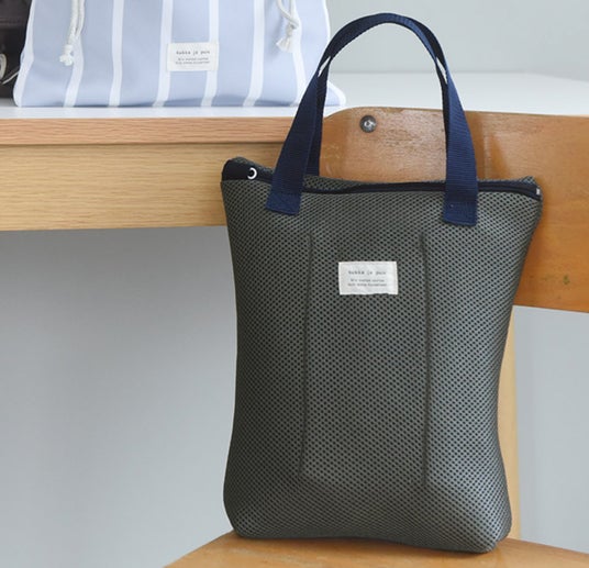 洗濯ネットの素材で作ったシューズバッグは、上履きを入れたママ洗濯機に投入OK!