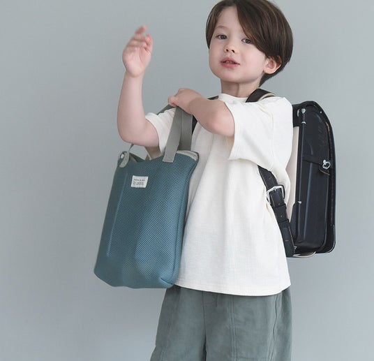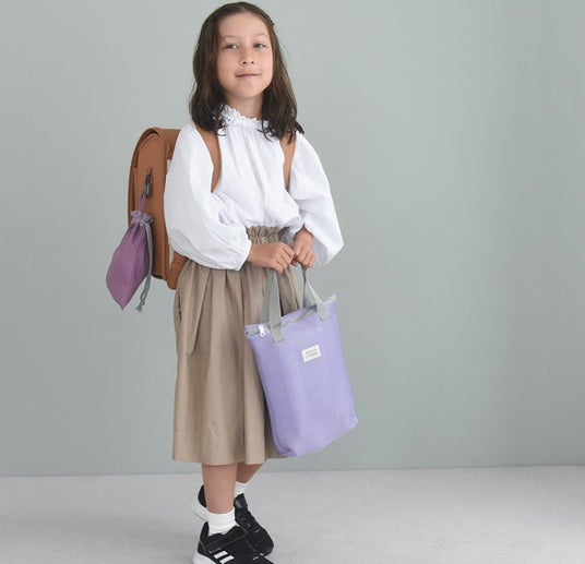 子ども達の登下校がもっと楽しくなるように・・・そんな思いを込めた3カラー展開。ファスナー&持ち手が配色デザインになった「パープル」「グレイッシュブルー」「チャコール」は、お洗濯中のママやパパの気分も上げてくれます。