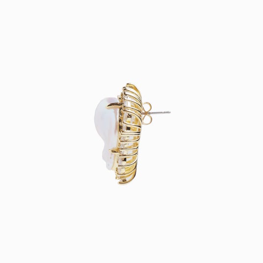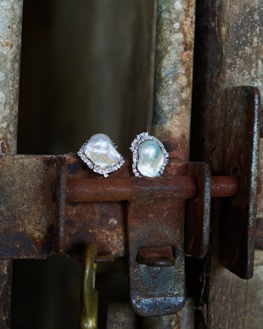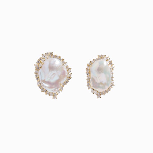 顔まわりに華やかさを添える、主役級のピアス/イヤリング。大振りのバロックパールと、ランダムに輝くキュービックジルコニアが、動きのある表情を演出します。一点投入するだけでスタイリングが決まる存在感がありながら、抜け感のあるデザインで、フォーマルからカジュアルまで自然に馴染む仕上がり。