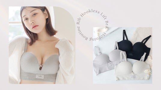 【魅せるノンワイヤーブラ リブホックレスリフトブラ】