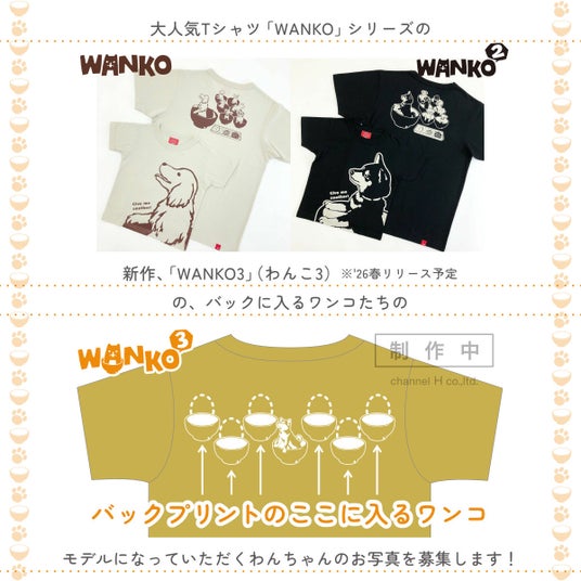「楽しくないTシャツなんて、欲しくない。」をテーマに、遊びの詰まったデザインでアパレル・雑貨を展開する「OJICO〈オジコ〉」(有限会社チャンネルアッシュ、本社:石川県金沢市、代表取締役:越原裕幹)は、来春リリース予定のオリジナルTシャツ「WANKO3(わんこ3)」のデザインのモデルとなるわんちゃんのお写真を、10月2日(木)よりTシャツのOJICO公式Instagramにて10月31日(金)まで募集いたします。