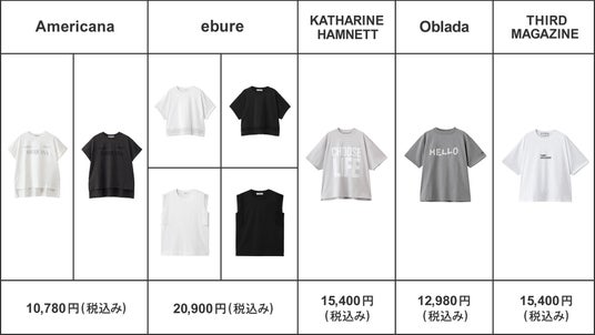 Americana(アメリカーナ)、ebure(エブール)、KATHARINE HAMNETT(キャサリンハムネット)、Oblada(オブラダ)、THIRD MAGAZINE(サードマガジン)