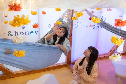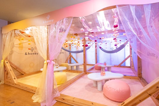 また浴室以外にも、「3種のハチミツを楽しむアイスセット」をはじめ、コラボレーションメニューを味わえるカフェスペースや、&honeyの世界観に包まれてゆったり過ごせる「ハンモックスペース」など美容と癒しを兼ね備えた特別な体験をお楽しみいただけます。