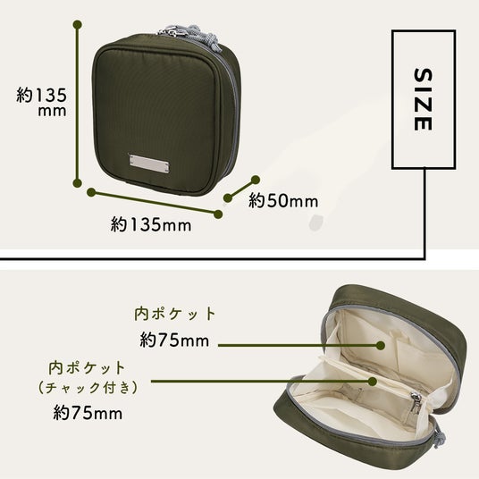 約55mmのマチ付きで自立するポーチなので、背の高い小物も収納しやすく、取り出しやすい設計です。