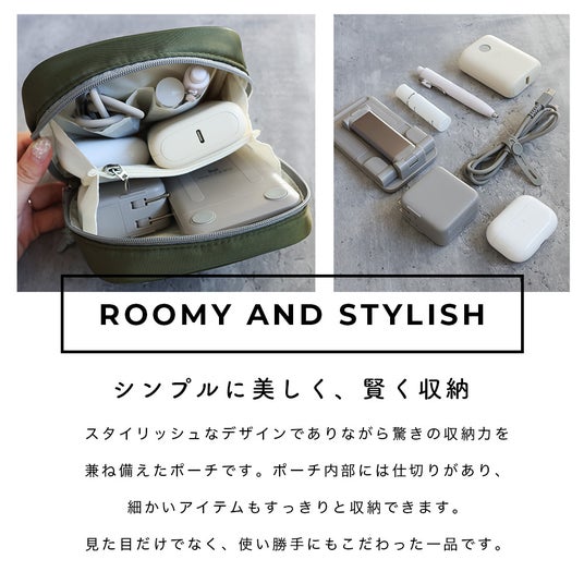 ガジェットだけでなく、メイク用品や旅行などの持ち歩きアイテムをコンパクトにまとめることができます。