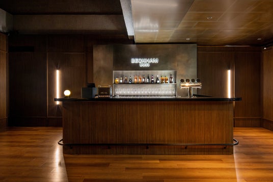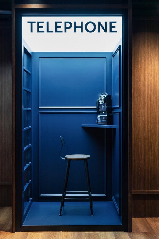 さらに「Tailor’s Shop」の奥には、隠し扉を抜けると現れるもう一つの世界──英国の伝統的なパブを再構築した空間が広がります。ここでは、ロンドンのメンバーズクラブを彷彿とさせるクラシックな洗練さと現代的デザインが融合。ヴィンテージ感漂う電話ボックスの受話器を取ると、ベッカム本人からのスペシャルメッセージが流れるというサプライズも用意されていました。