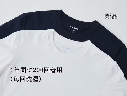冒頭でもご紹介した、新品と年間200日間着用したスタッフ私物Tシャツの比較。
