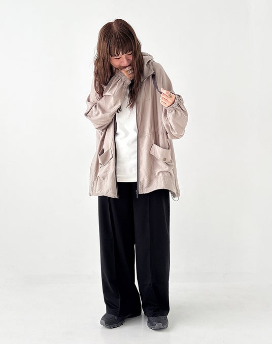 さっと纏うだけでお洒落にUV対策(カット率90%以上)ができる多機能パーカー。撥水加工付きで、急な天候の変化にも慌てません。軽量で、白T×黒パンツのシンプルコーデに羽織るだけでこなれた大人カジュアルが完成。裾ドロストでシルエット調整も可能です。機能とお洒落を両立する、これからの時期に手放せない実力派です。