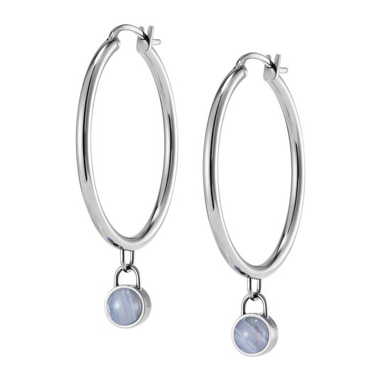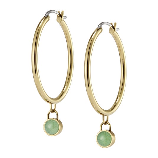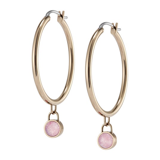《ピアス》ステンレススチール、パープルアゲート/グリーンアベンチュリン/ローズクォーツ、 全長:41.95mm、幅30mm/石:6mm
