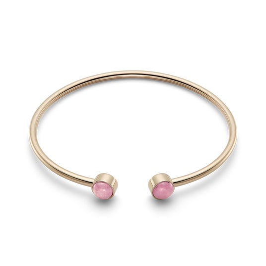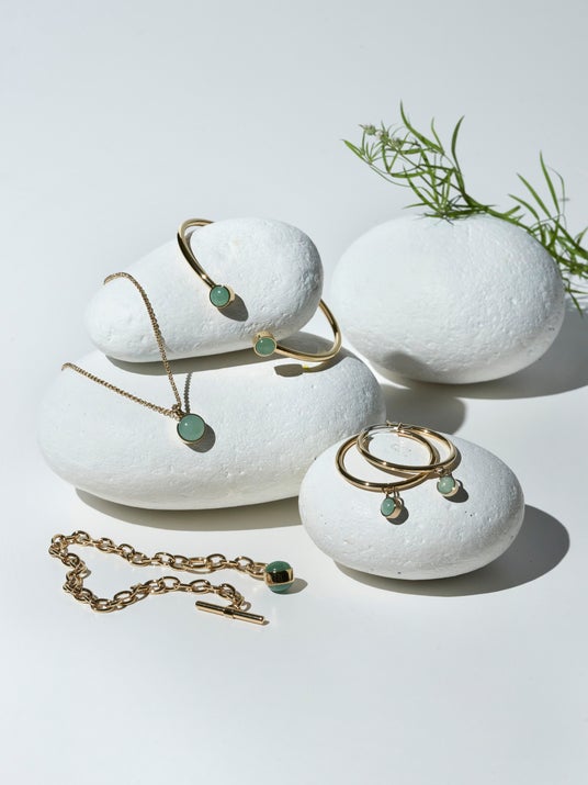 自然が生んだ美しさと意味を宿した、カボションカットのカラージェムストーンが主役のジュエリーコレクション。調和と自信をもたらすパープルアゲート(シルバー)、癒しのグリーンアベンチュリン(ゴールド)、愛と知性を象徴するローズクォーツ(ローズゴールド)が、それぞれの魅力を引き立てます。ペンダントネックレス、Tバー付きの存在感あるチェーンブレスレット、両端に天然石を配した華奢なバングル、チャームが揺れるフープピアスまで、毎日のスタイルに優美な彩りを添える全12SKUが揃います。