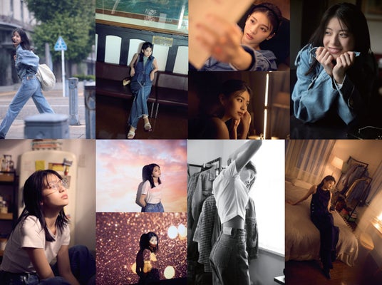 SOMETHING (サムシング) のデニムを着用した、出口さんの様々な表情が映し出されます。