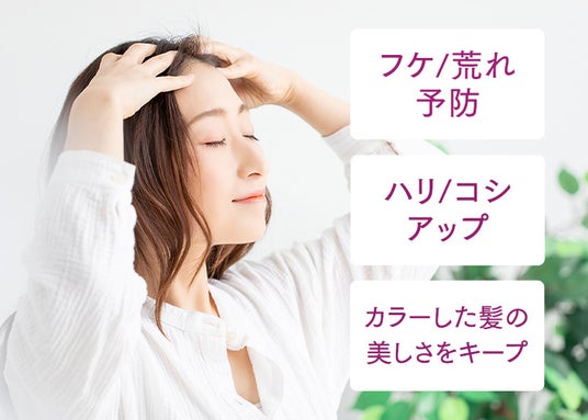 頭皮と髪のエイジングケア*1根元からふわっとした印象へヘアケアだけではなく、スカルプケアも同時にかなえる高機能エッセンス。頭皮にうるおいを与え、過剰な皮脂分泌も抑えるディフェンスカルプ*2の配合で、フケ・荒れを防止。頭皮環境を整えることで健やかな髪へ。また分け目が目立ちがちなペタンとした髪をふわっとハリコシのある印象に導くヘマチン*3など、サロン市場で人気のエイジングケア*1成分も採用。カラーリングの褪色が気になる方にも。