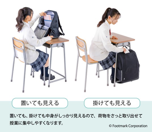 ■自立して型崩れしにくい:置いても、掛けても中身がしっかり見えるので、荷物をさっと取り出せて授業に集中しやすい。