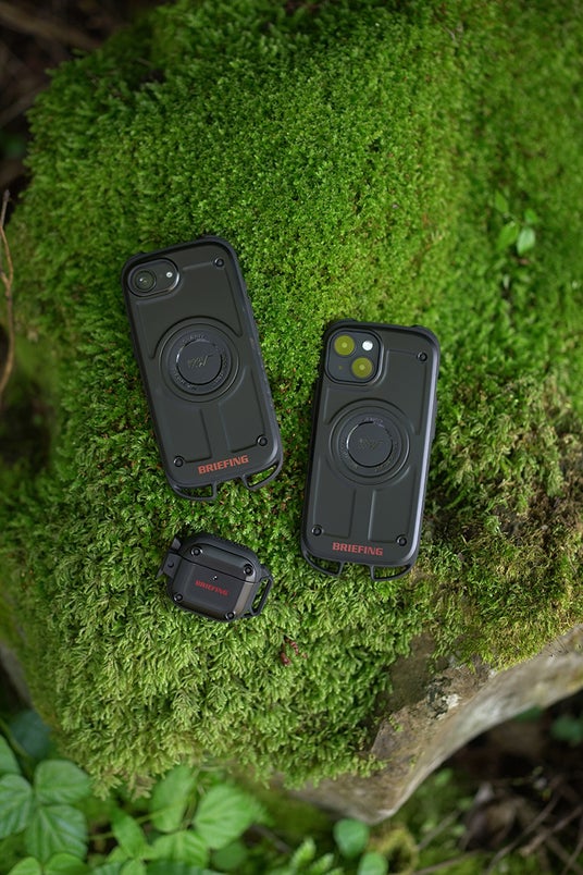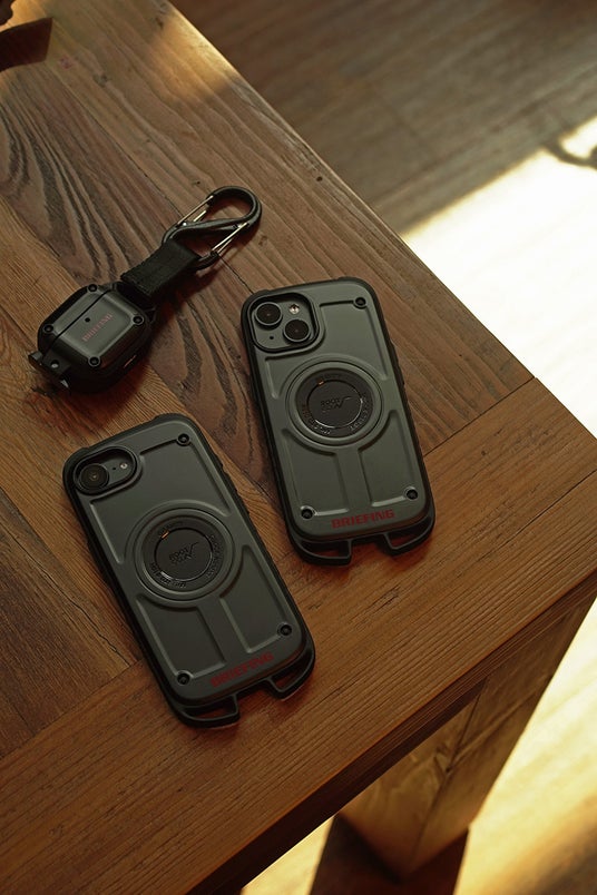 「Shock Resist Case Rugged. for iPhone」「Shock Resist Case Pro. for AirPods」に、BRIEFINGのロゴを配した特別仕様。