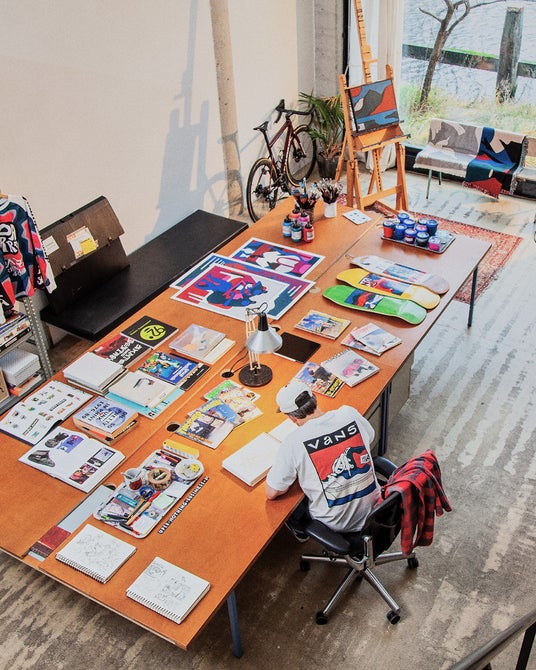 Parraは1990年代初頭にプロスケートボーダーとして活動を開始し、Vansのチームライダーとしてサポートを受けていました。その大胆かつシュールなアートワークが世界中のギャラリーやミュージアムコレクションで高い評価を得るようになった現在、両者の歴史が一周し、今回のコラボレーションが実現しました。