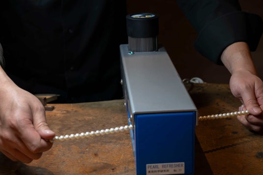 RITZ GLANDEは、(株)真珠科学研究所と日本大学工学部が共同開発した真珠クリーニング装置『パールリフレッシャー』を道内で唯一設置しております。特殊な研磨剤を練り込んだブラシを使用して真珠表面をマイクロ研磨し、正常な表層に戻すことで真珠本来の「テリ」(輝きと透明感)を復活させます。