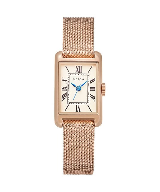 夜空に浮かぶ月が雲に包まれた幻想的な瞬間、それはまるで夢のような美しさ。そんな日本の 詩情と優美な風景からインスピレーションを得た「朧月」コレクションは、洗練された美しさ と精巧なデザインが魅力の腕時計です。ローマ数字のインデックスと美しいブルースチールが クラシックな雰囲気を演出し、細部までこだわった上品なデザインは、どんなシーンにもエレ ガントさをプラスします。縦29mm×横18mmのコンパクトなレクタングルケースは、ローズ ゴールドとシルバーの2色展開。型押しのレザーベルトとケース同色のメッシュベルトから、あ なただけのスタイルを選べます。「朧月」は、日本の美意識を体現した特別なコレクション。 大切な人へのプレゼントにもおすすめです。