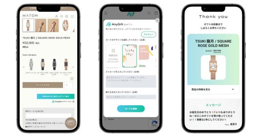 株式会社ビヨンクール (本社所在地: 東京都渋谷区 、代表取締役社長: 荒井 雄志 )が運営する オンラインショップ「 MATOW 公式オンラインストア」は、AnyReach株式会社(本社所在地: 東京都港区、代表取締役:中島 功之祐)が提供する『AnyGift(エニーギフト)』を利用したe ギフトサービスを「 MATOW 」にて開始いたしました。