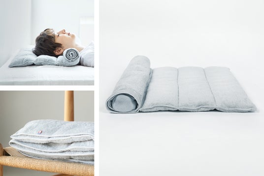 タオルをクルクル巻いて理想の高さに調整可能な枕。肌触りもよく、気軽に洗える。累計27万個以上販売。