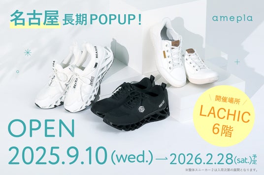 株式会社アメイズプラスが運営する、会員数46万人、月間来訪者数136万人を誇るオンラインショップ「amepla」のポップアップショップ、「amepla POPUP in LACHIC」を名古屋市栄にあるラシックにて9/10(水)から約半年間開催します。