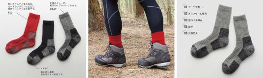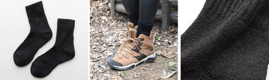 品質にこだわる日本製のTAKUMI《comifine(R)》和紙糸をメイン素材に採用し、通気性、吸水速乾性、軽さを兼ね備え、足底部分はクッション性のあるパイル素材編みを施し、快適な履き心地になります。