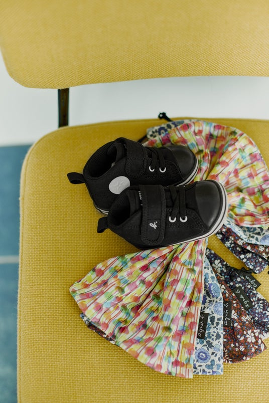 2025年7月16日(水)、コラボレーションスニーカーに初のキッズモデルがラインアップ。アニエスべーのコレクションアーカイブ生地を使用したシューズバッグをセットにして、販売いたします。
