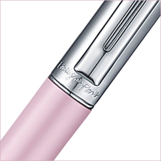 コンパクトで持ち運びに便利なこのミニサイズのボールペンは、パリの雰囲気と日常の機能性を完璧に融合しています。柔らかなパステルピンクのラッカー仕上げに、エレガントなローズゴールドPVDトリムを施し、『エミリー、パリへ行く』の洗練された遊び心を表現しています。天冠にはスワロフスキー・クリスタルがあしらわれ、上品な輝きを添えています。携帯に最適なサイズ感で、クラッチバッグやトラベルウォレットにすっきり収まり、手帳用としても最適です。中央のリングにはドラマタイトルとシェーファーのロゴがダブルネームで刻印されており、機能性だけでなくコレクション性も抜群です。